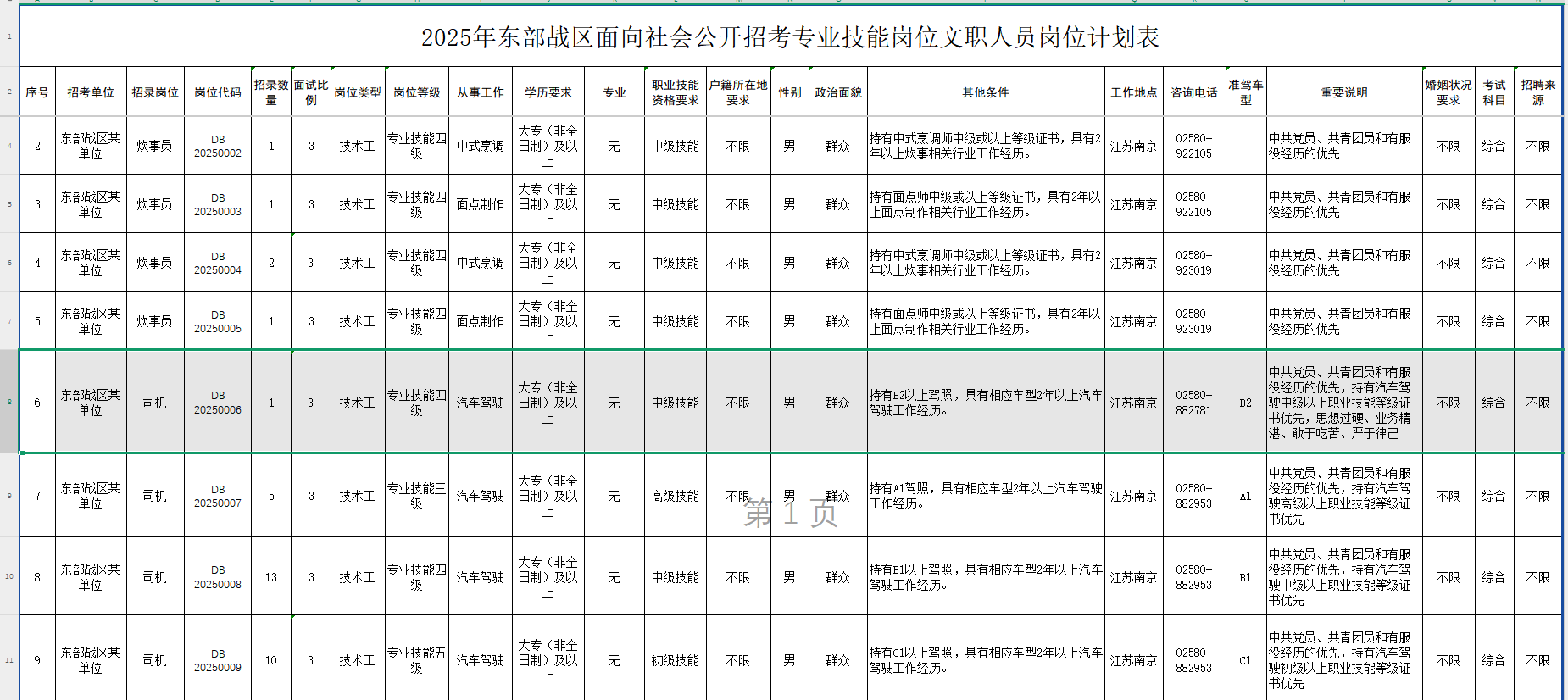有哪些专业?自己能考哪些?原本军队文职是包含13个大的类别,45个专业的,但明年采用新大纲,专业科目减到26个。下面的截图是25年东部战区面向社会公开招考专业技能岗位文职人员岗位计划表,大家可以看下,每年在发布招考公告时都会发布这个招考岗位表的,大家可以了解: